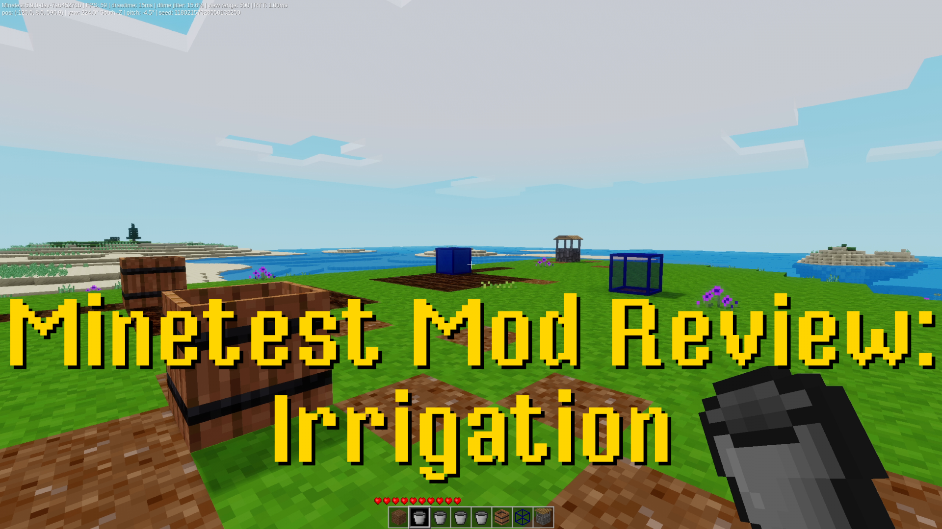 We all know that for plants to grow they need water. This mod introduces a new spin on watering. Rather than just popping a water node in the ground every seven nodes, this mod adds a water barrel and reservoir which slowly release water into the surrounding ground, basically meaning you need to keep them filled from time to time or your soil dries out. The mod also includes a well that slowly collects water that you can use to fill the irrigation containers.
